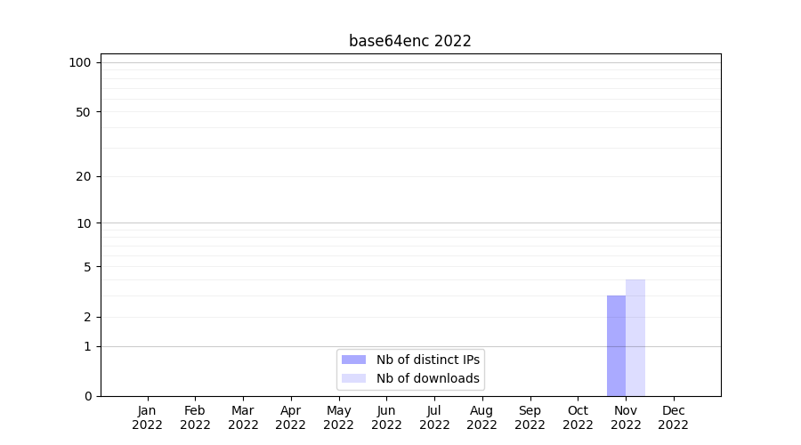 Number of downloads for annotation package base64enc, year by year, from 2025 back to 2014 (years with no downloads are omitted):
