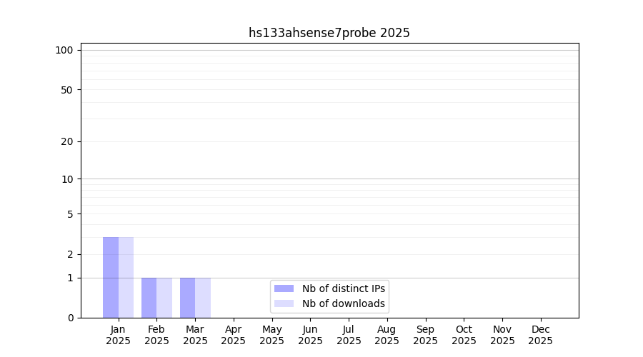 Number of downloads for annotation package hs133ahsense7probe, year by year, from 2025 back to 2014 (years with no downloads are omitted):
