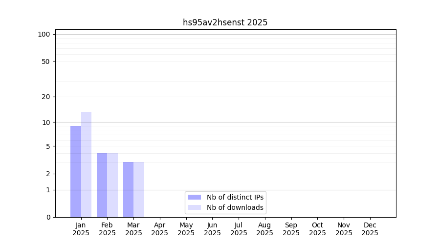 Number of downloads for annotation package hs95av2hsenst, year by year, from 2025 back to 2014 (years with no downloads are omitted):