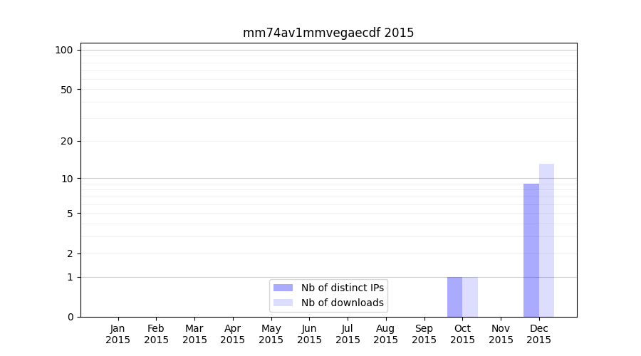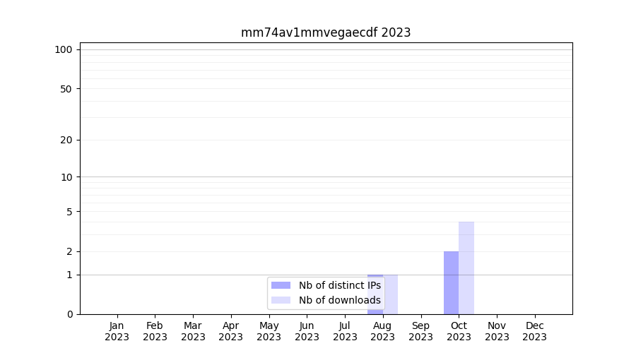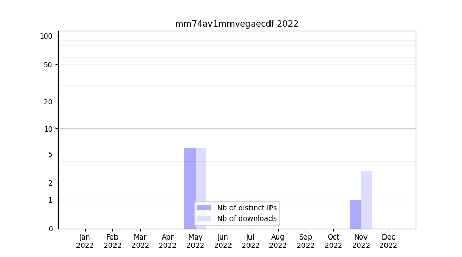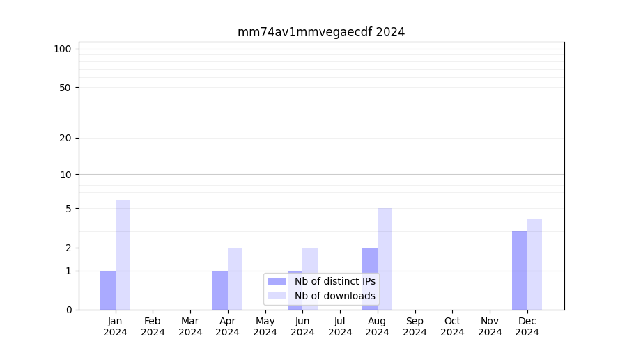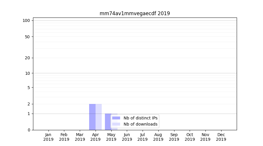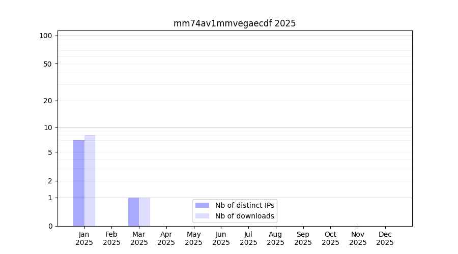 Number of downloads for annotation package mm74av1mmvegaecdf, year by year, from 2025 back to 2014 (years with no downloads are omitted):