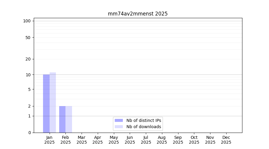 Number of downloads for annotation package mm74av2mmenst, year by year, from 2025 back to 2014 (years with no downloads are omitted):