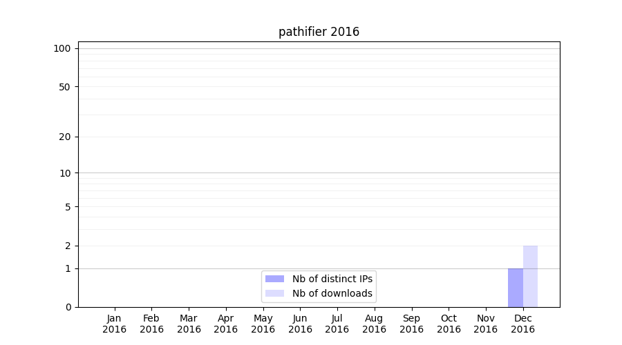 Number of downloads for experiment package pathifier, year by year, from 2025 back to 2014 (years with no downloads are omitted):