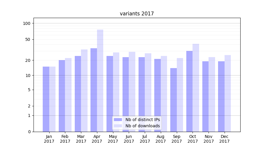 | Month | Nb of distinct IPs | Nb of downloads |
