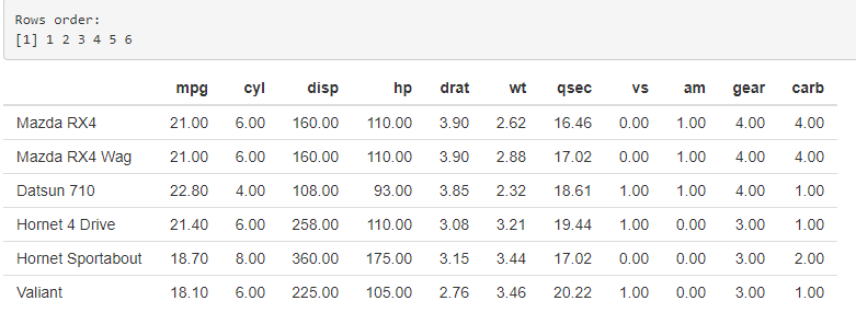 })$tbl <- renderTable(head(mtcars), rownames = TRUE)